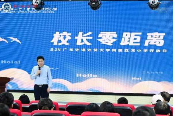 “校长面对面”环节,广外荔湾小学校长谢仁发对学校创办历程、特色教育理念等发表了讲话,广外荔湾小学传承广外系教育理念,亦拥有独特创新的教育优势。广东外语外贸大学的蔡欢副教授,也为在场嘉宾介绍了广外与时俱进的教育模式及方法。